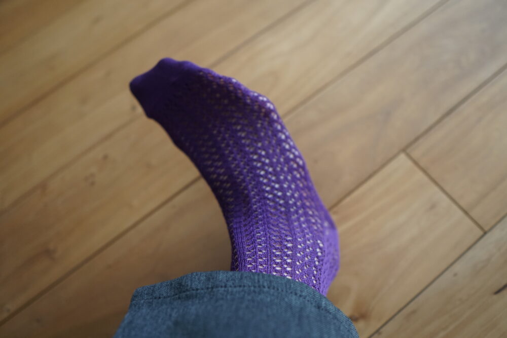 ドレスにもカジュアルにもあわせられる気品ある見た目に加えて、少し着圧感がある履き心地が非常に好みです。